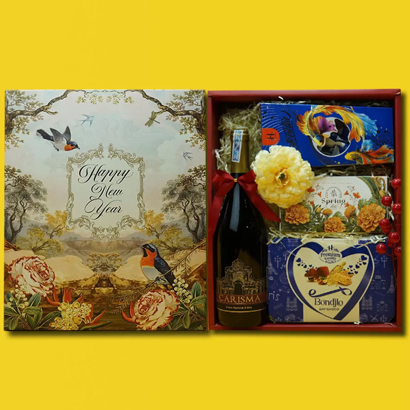 Bao bì quà Tết sang trọng: Bạn có thể chọn rượu vang Carisma Casa Santos Lima với một bộ quà Tết cao cấp, bao gồm hộp quà sang trọng, thiết kế đặc biệt với màu sắc đỏ, vàng truyền thống, thể hiện sự may mắn và thịnh vượng cho năm mới.