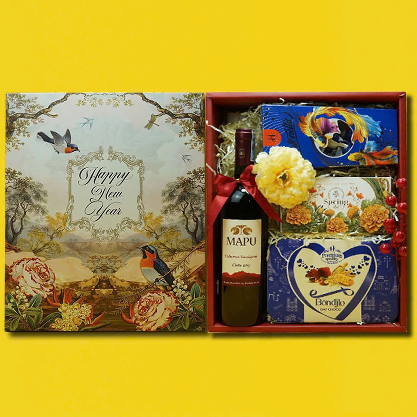 Set quà Tết: Bạn có thể mua rượu vang Mapu Cabernet Sauvignon trong các set quà Tết đặc biệt, kết hợp với các món quà khác như hộp quà bánh mứt Tết, phô mai hoặc hạt dưa. Các set quà này không chỉ mang đến sự sang trọng mà còn thể hiện sự tỉ mỉ trong việc lựa chọn quà tặng.