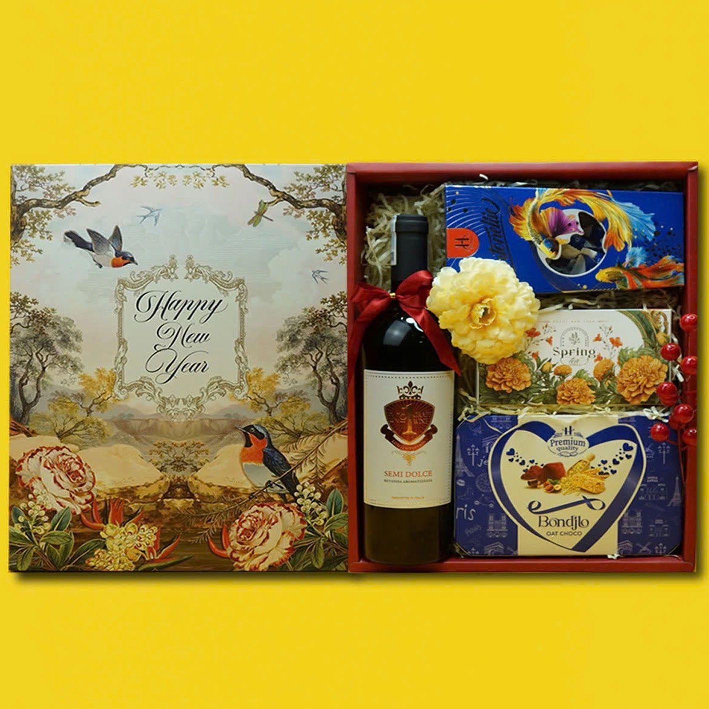 Tinh thần đón năm mới: Món quà như Rượu Vang Semi Dolce No.1 giúp người nhận cảm nhận không khí Tết tươi vui, sum vầy, là dịp để mọi người cùng nâng ly chúc mừng, kết nối tình cảm với bạn bè, đối tác hay người thân trong gia đình.